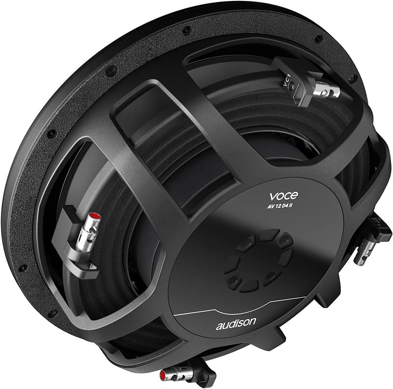 Audison rates the AV 12 D2 II at 550 watts continuous and 1100 watts peak power handling. This capability comes from a 1.5-inch six-layer copper-clad aluminum wire voice coil. To help keep the motor assembly cool during extended use, the basket and motor structure incorporate Audison’s Airflow Venting Cooling (A.V.C.) architecture.
